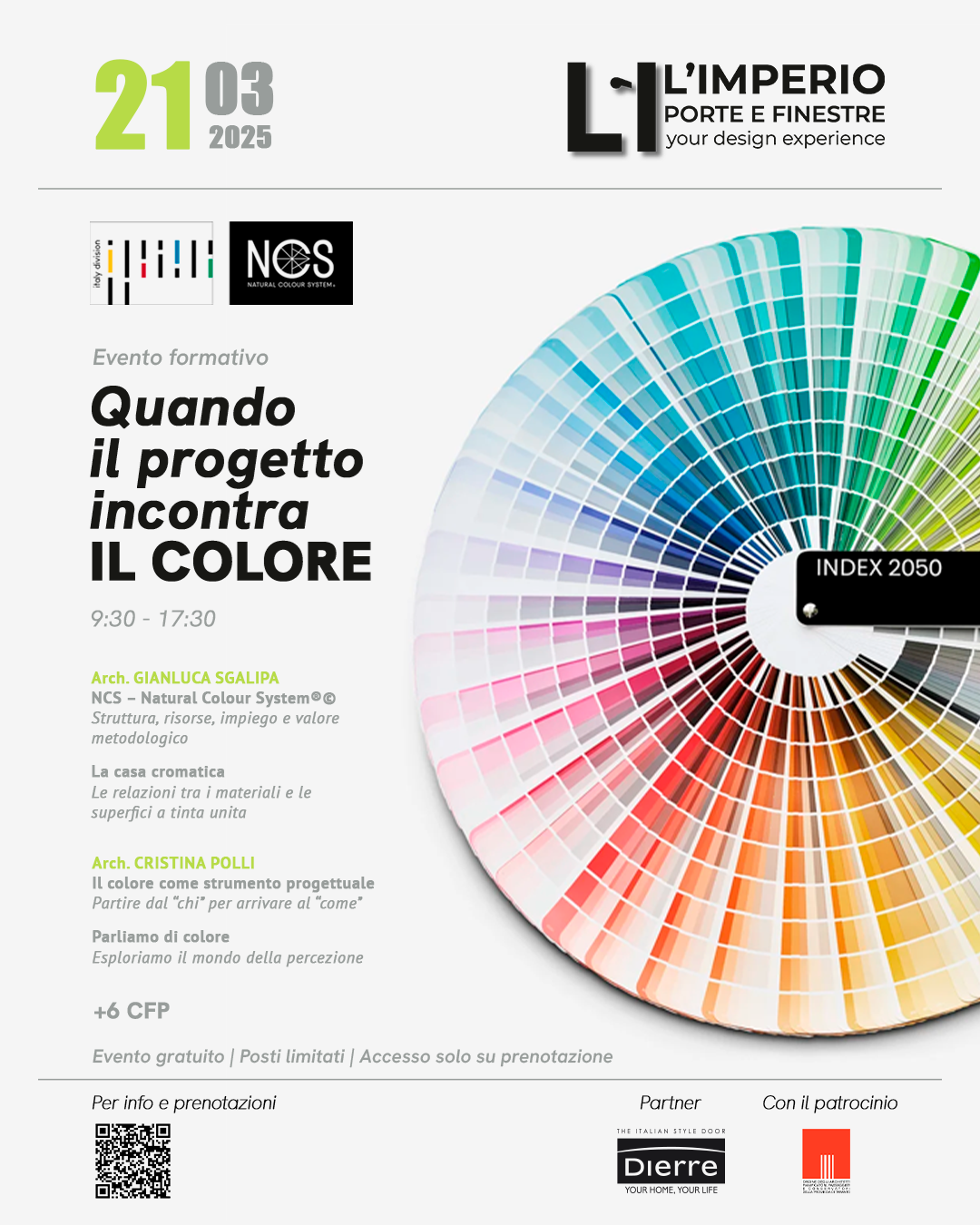 L’evento, in programma il prossimo Venerdì 21 Marzo 2025 presso “L’Imperio porte e finestre” (Via Cavour, 1 – Taranto), si pone l’obiettivo di fornire ai professionisti gli strumenti per un corretto approccio alla realtà cromatica, con particolare riferimento ai criteri di selezione e di riconoscimento dei colori nelle differenti situazioni creative.