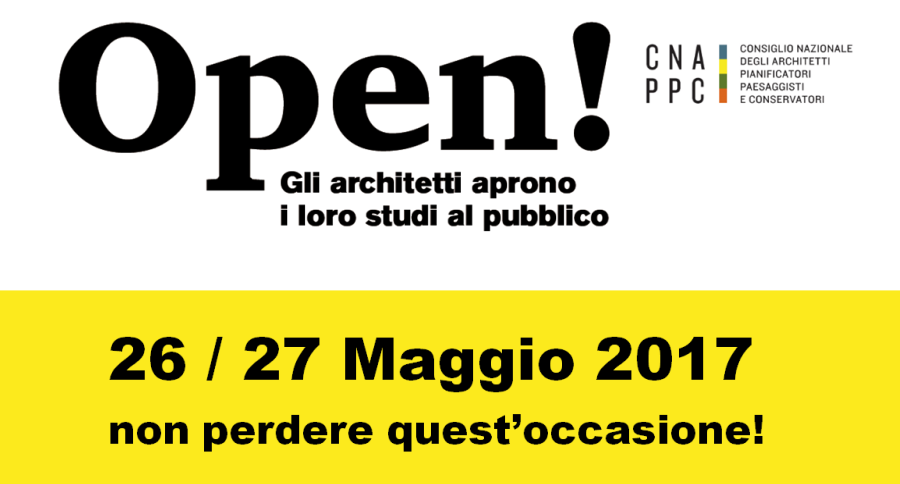 In riferimento all'iniziativa “Studi aperti in tutta Italia”, che accomunerà idealmente tutti gli Studi italiani in un grande evento nazionale il 26 e 27 maggio 2017, si fa presente che pur essendo scaduti i termini per iscriversi ed aderire attraverso la piattaforma nazionale iM@teria, coloro i quali fossero ancora interessati potranno inviare la propria disponibilità alla Segreteria dell'Ordine degli Architetti P.P.C. della Provincia di Taranto entro questa settimana.